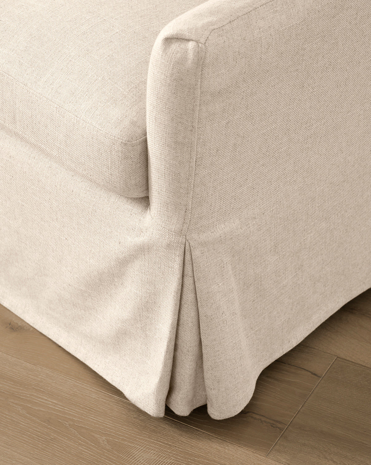 Defined by a refined slipcover and a softened, sculptural silhouette, the Andie Swivel Armchair brings an inviting sense of ease to any corner of the home. Its 360-degree swivel base offers functional versatility, while the tonal performance linen provides an enduring foundation with organic warmth and down-blend comfort that defines the collection.