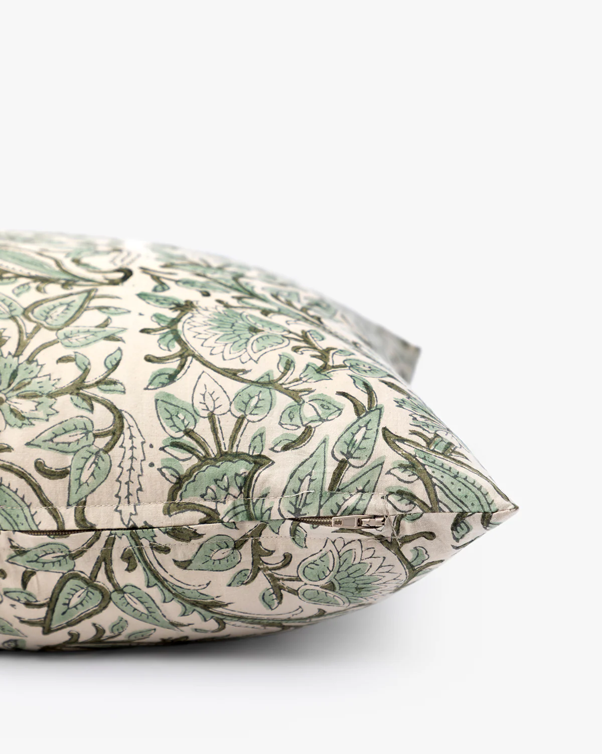 Inspired by traditional Indian block printing, the Ashmore Pillow Cover features a hand-pressed floral pattern rendered in soft blue tones. Each piece carries subtle variations that celebrate its craftsmanship, lending heritage beauty and textural interest to sofas, beds, and reading nooks alike.
