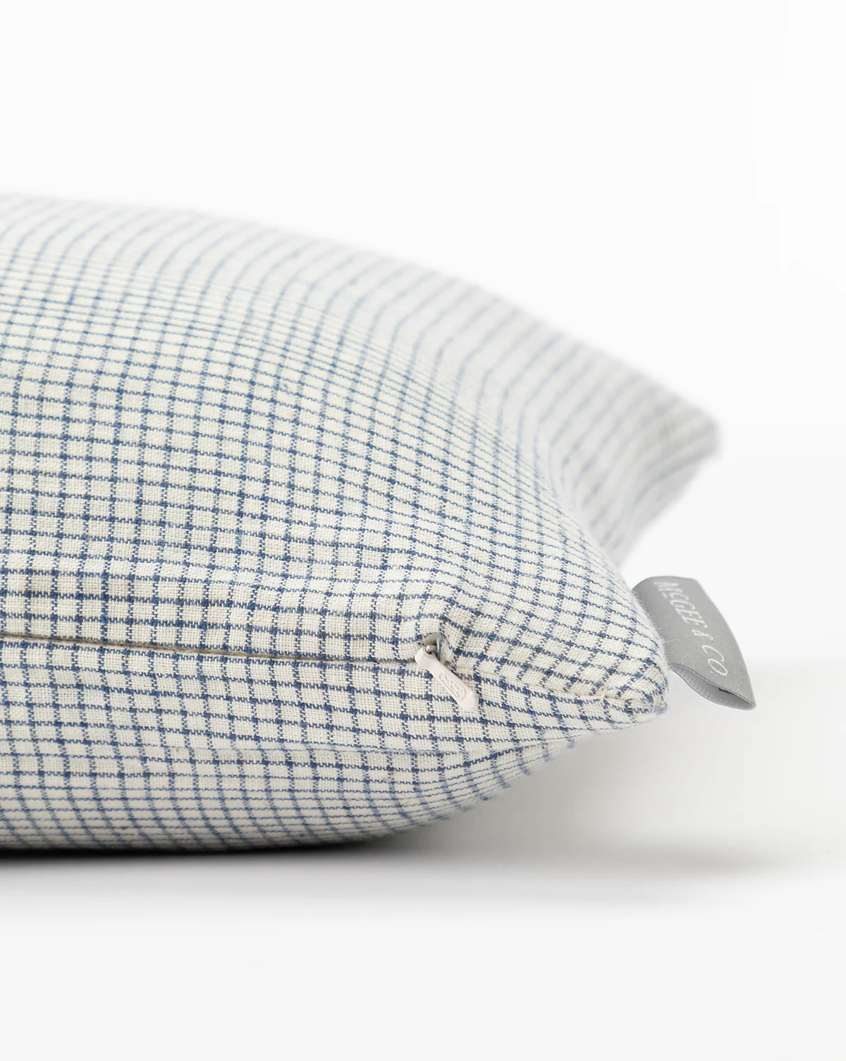 Featuring a classic color palette of blue and cream, our Luther Pillow Cover is the perfect textile to mix and match. With a smaller take on a standard grid pattern, this pillow blends easily with both florals and solids, adding crisp dimension to your sofa or bed.