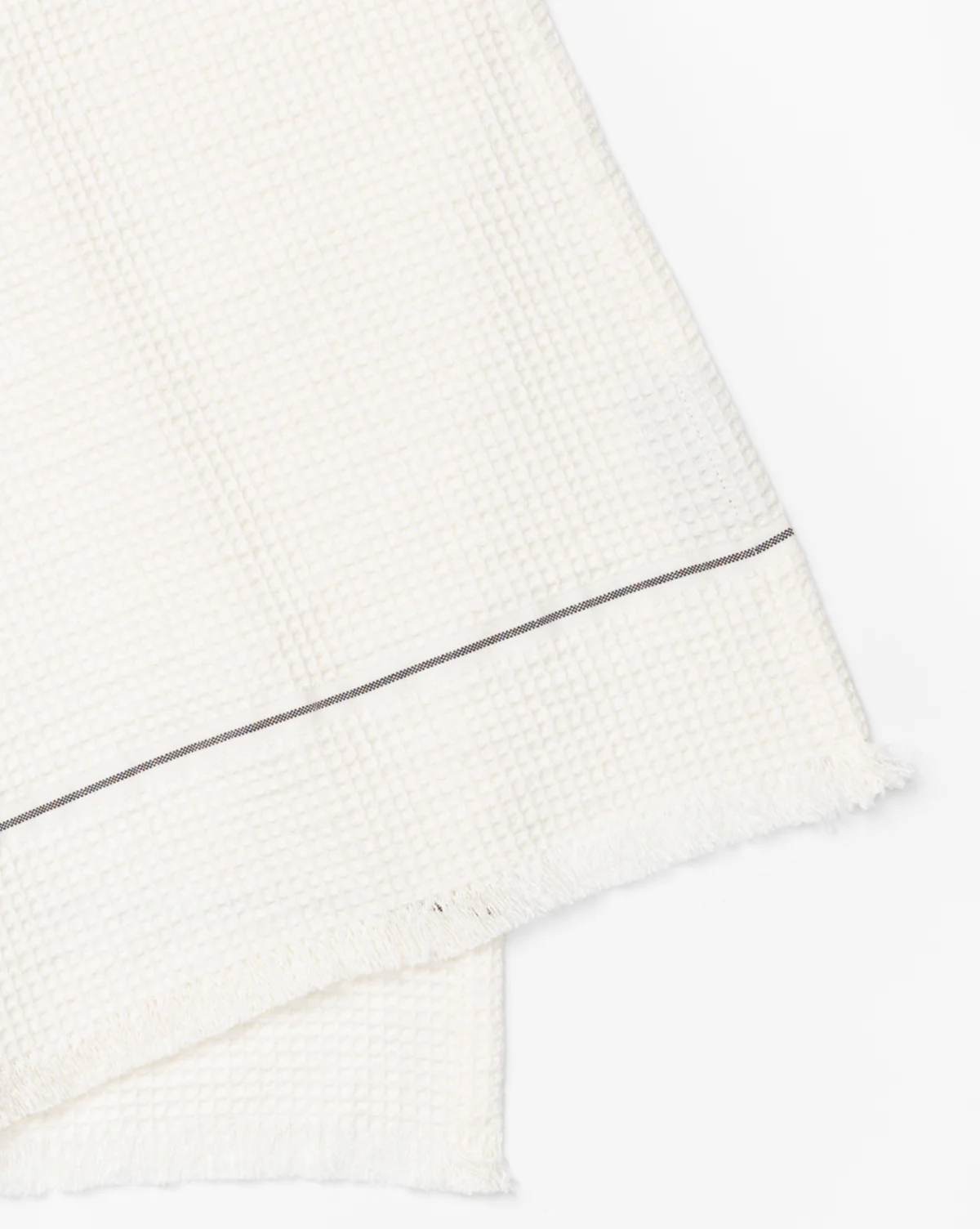 Timeless and simplistic, the Waffle Hand Towel can find a home in any kitchen. With waffled details and a small black stripe, this linen-cotton blend towel is the perfect addition to your everyday kitchen decor.